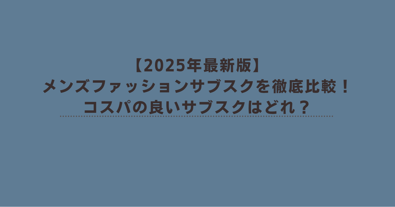 【2025年最新】おすすめのメンズファッションサブスクはこれ!